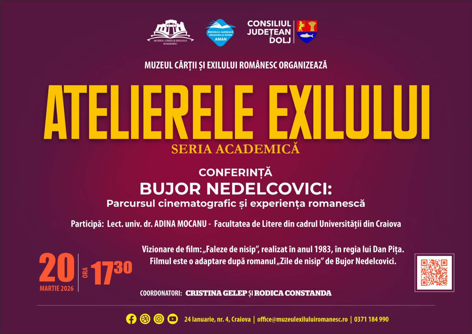 Muzeul Cărții și Exilului Românesc organizează vineri, 20 martie, începând cu ora 17.30, primul eveniment din Seria Academică a Atelierelor Exilului, dedicat scriitorului Bujor Nedelcovici,