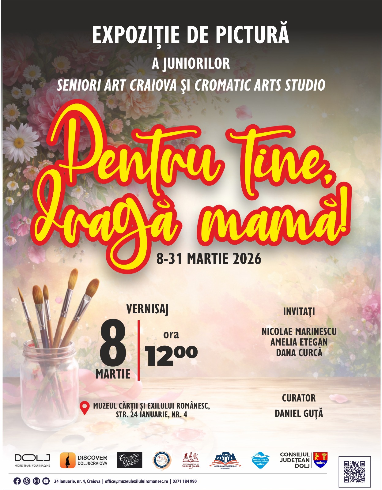 Muzeul Cărții și Exilului Românesc găzduiește duminică, 8 martie 2026, la ora 12.00, vernisajul expoziției de pictură Pentru tine, dragă mamă, organizat de Centrul Județean